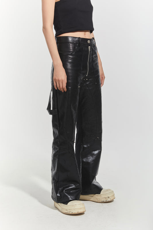 005 BLACK CRACKED COATED LEATHER DOUBLE KNEE