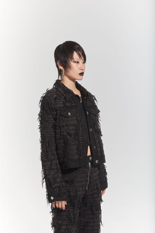 003 DESTROYED WASHED BLACK DENIM JACKET